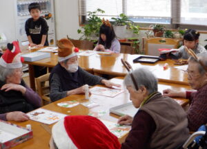 高齢ご利用者と一緒に制作活動 2026.01.12 みらい学童より 昨年末、併用施設の高齢ご利用者のサークル活動にみらい学童の子どもたちも参加させていただきました(*^^*) 今年の干支は「午年」☆彡 素敵なお正月飾りが完成しました!! みんなで記念撮影後、お土産もいただき大喜びの子どもたちでした♪ Tweet Share Hatena Pocket RSS feedly Pin it 投稿者: shiromi みらい学童より パンフレット作成中前の記事 お正月遊び次の記事
