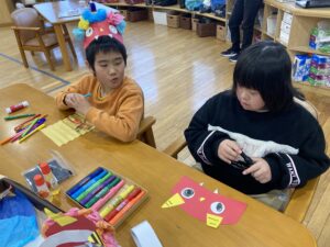 2月3日の節分に向けて、鬼のお面作りに挑戦しました!(^^)!